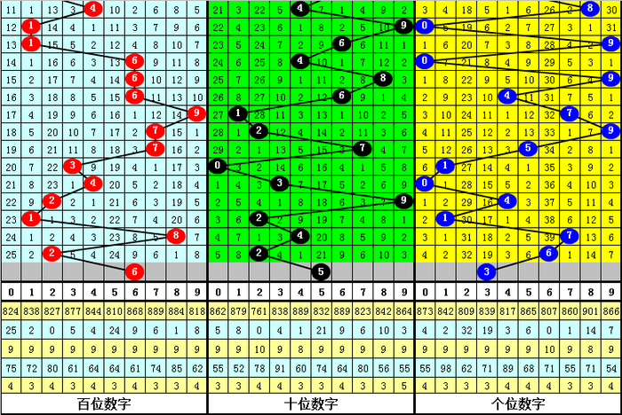 个位分析:最近7期个位分别开出奖号:5、1、0、4、1、7、6,个位振幅为7个点位,本期预计个位号码走小,参考号码3。